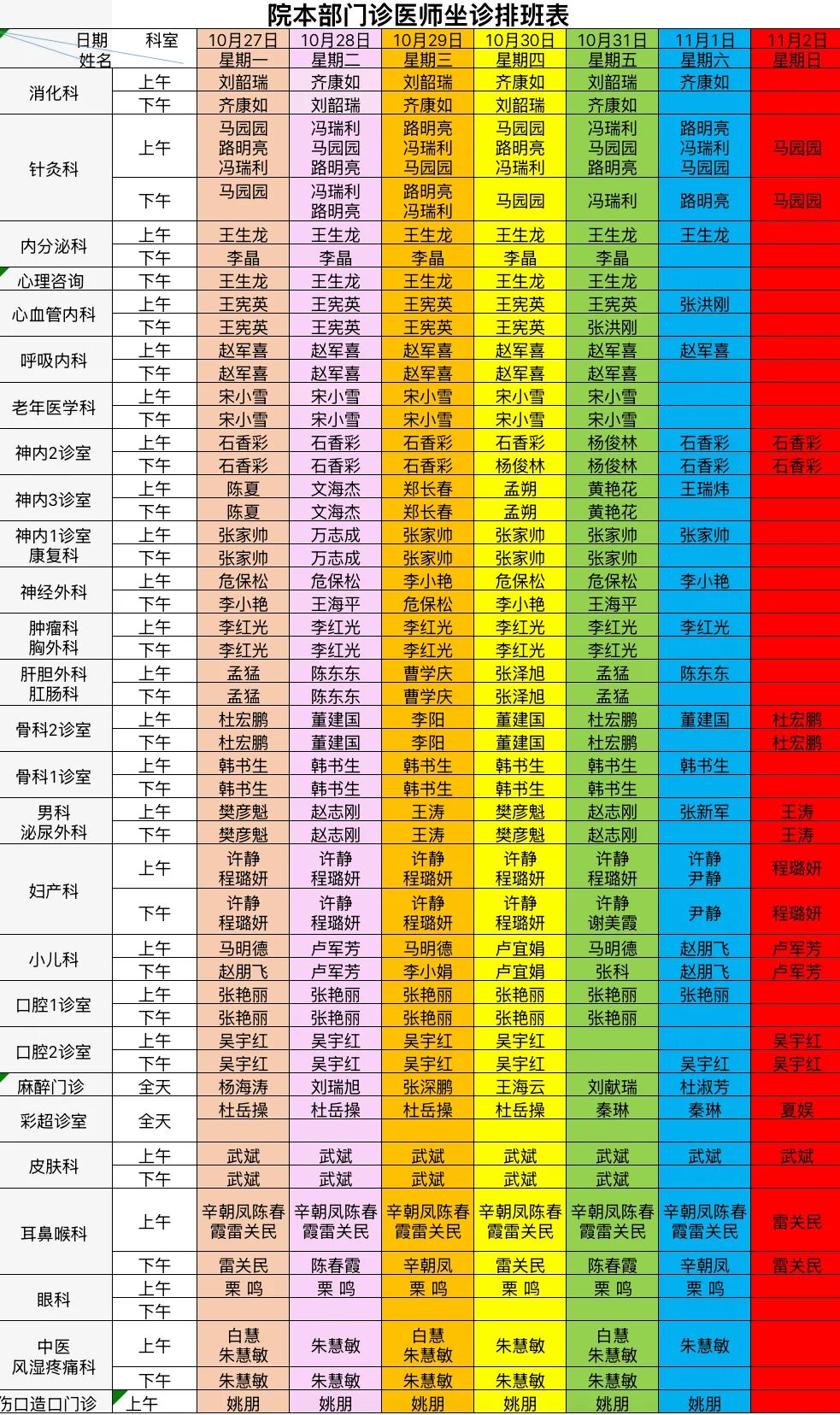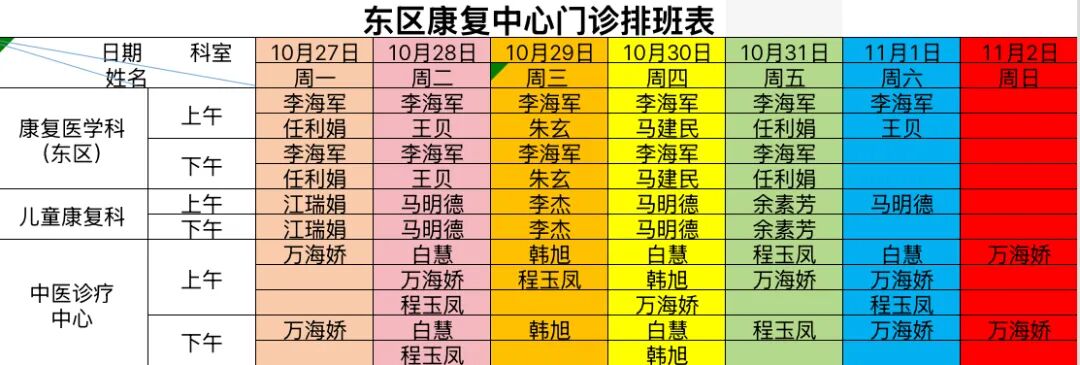 专家坐诊时间丨10月27日至11月2日红足1世手机足球网门诊医生出诊安排
